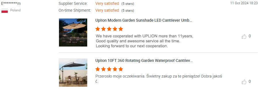 Hungary M***s Said:We have cooperated with UPLlON more than 11years,Good quality and awesome service all the time.Looking forard to our next cooperation.