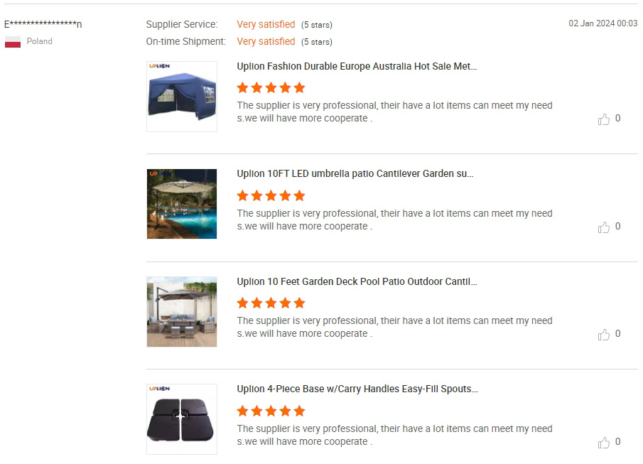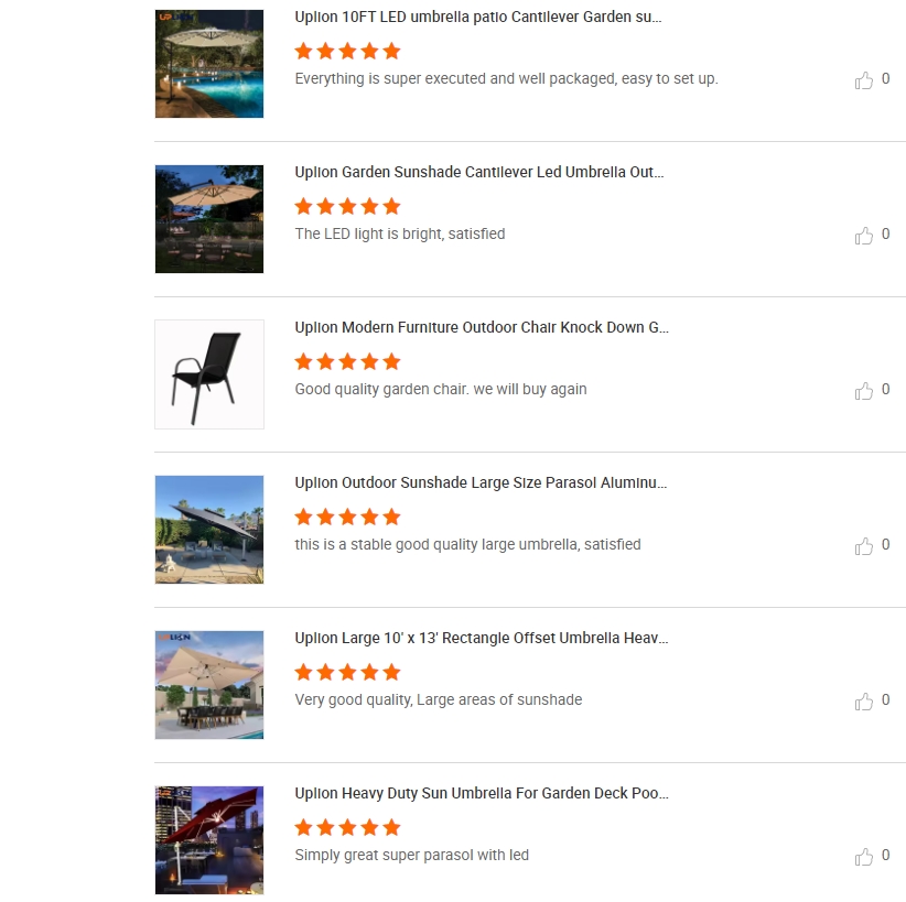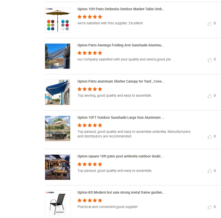 our products are celebrated for their durability, ease of installation, and stylish design, suited to all outdoor settings. Customer feedback highlights our commitment to quality: clients praise our sturdy umbrellas and chairs, remarking on their excellent value and professional service. Choosing Uplion means choosing reliability and satisfaction.
